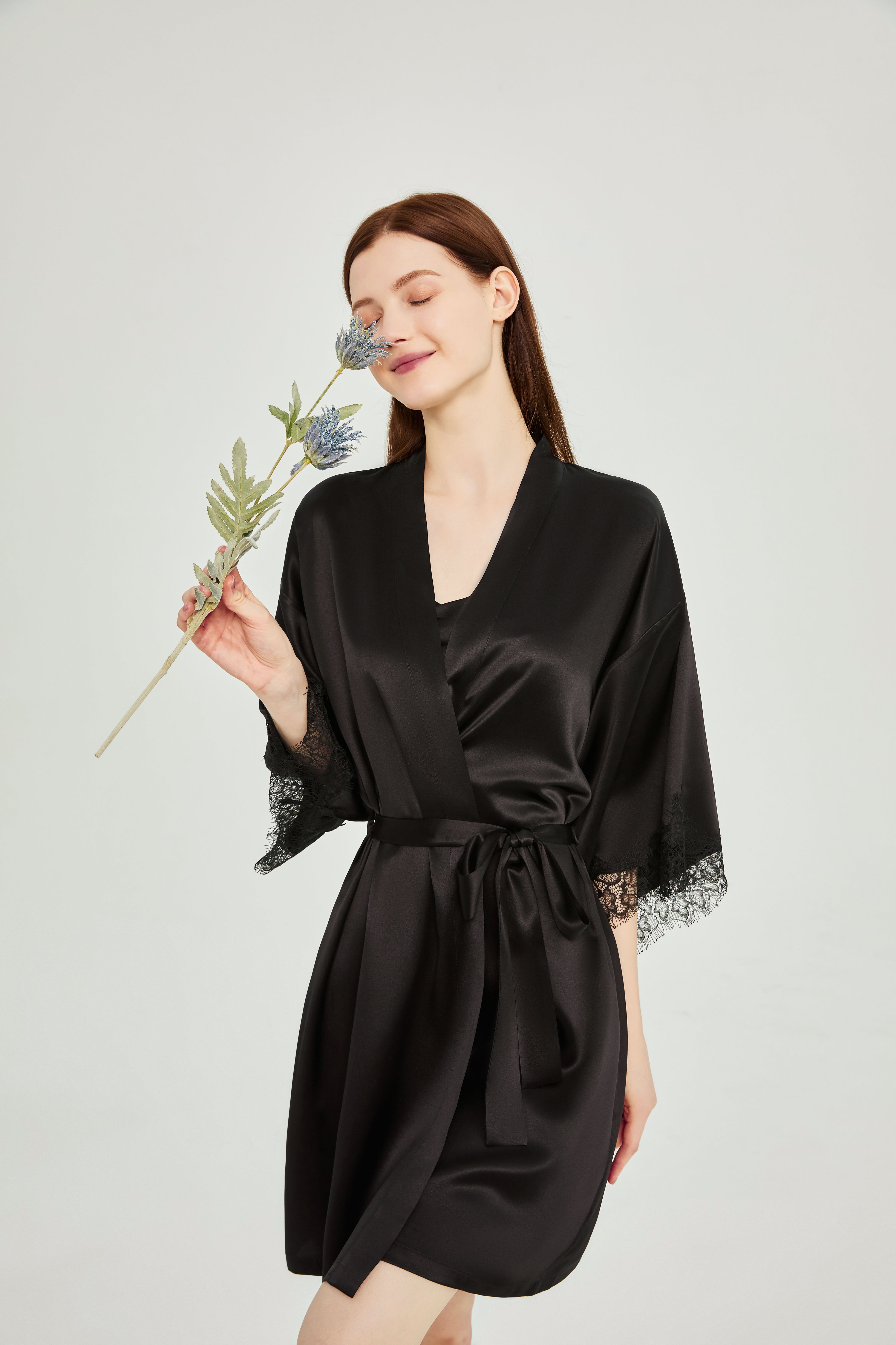 Wholesale Charmeuse Casual Belted Womens Robe