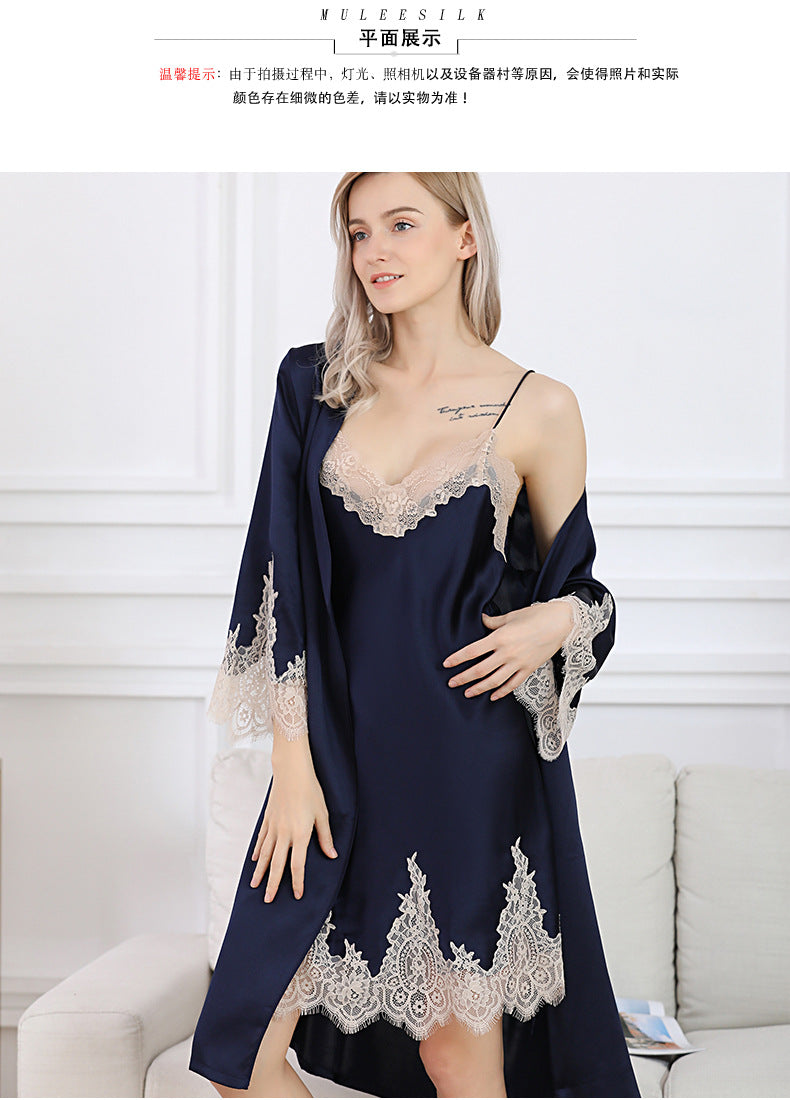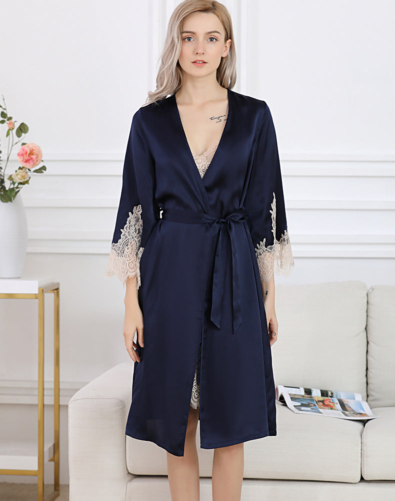 Wholesale Charmeuse Lace Cuffs Elegant Belted Robe