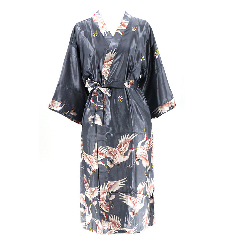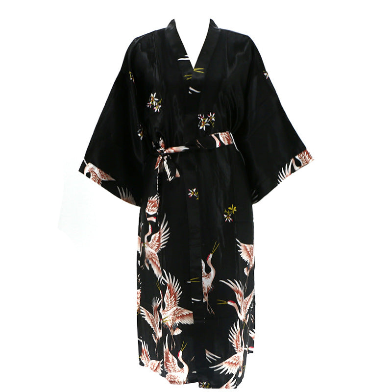 Wholesale Women's Satin Crane Print Short Robe