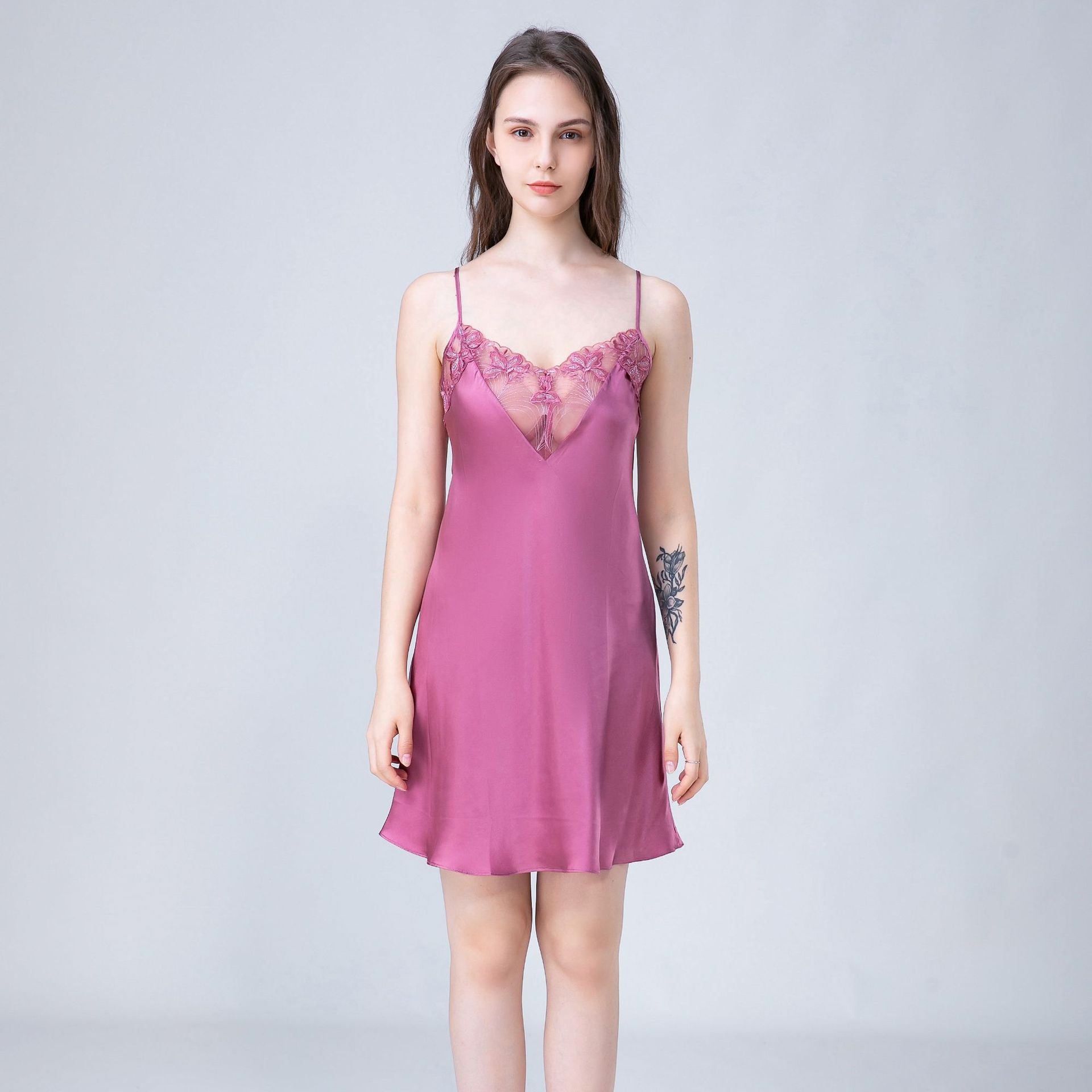 Wholesale Charmeuse Sexy Lace Neck Slip Dresses