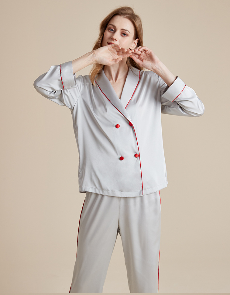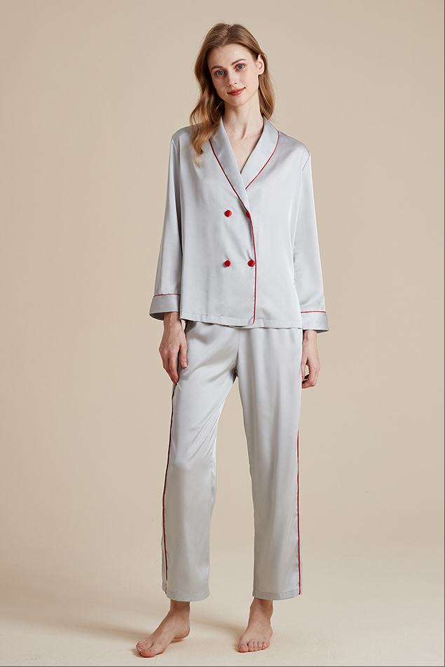 Wholesale Charmeuse Binding Trim Long Sleeve Pajama Set