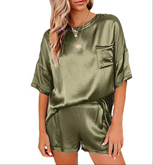 Wholesale Charmeuse Casual Womens Pajama Set 2Pcs