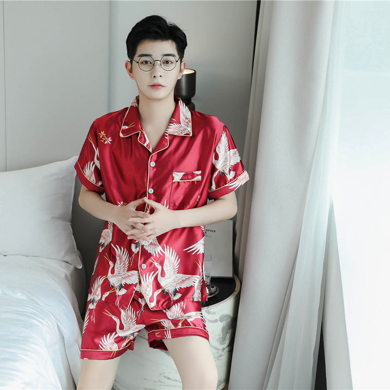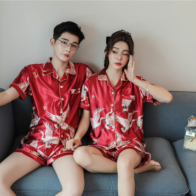 Wholesale Women's 100% Charmeuse Crane Print Short Sleeve Pajama Set