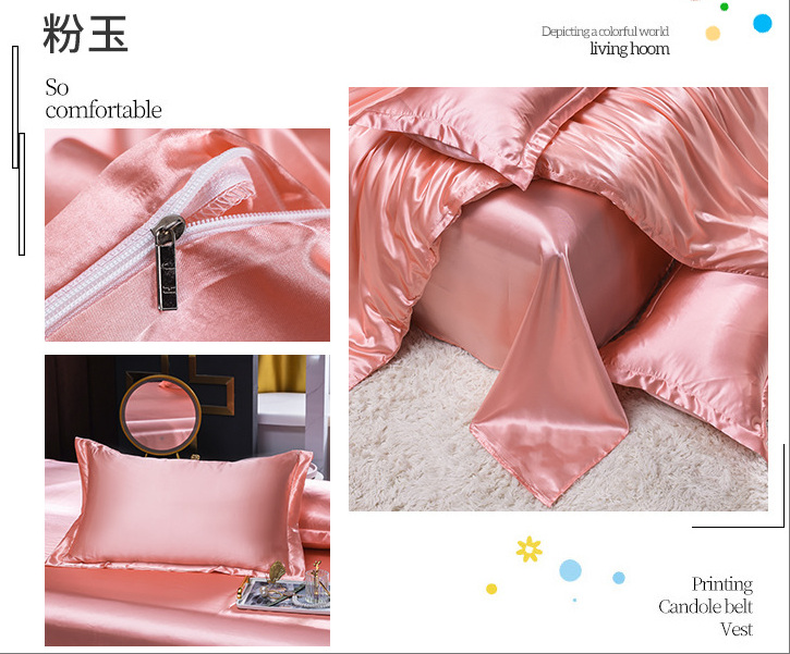 Wholesale 4Pcs Satin Set Duvet Cover+Flat Sheet+2x Pillowcases